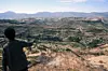 En gruppe eritreere står i kø utenfor et lite, grønt militærtelt omgitt av gul krattskog på en bakketopp som markerer grensa mellom Etiopia og Eritrea. De vil sørover.