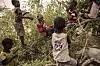 Children eat leaves from an Esekon tree inside the Loreng’elop village, located in Turkana County, northwest Kenya on October 21, 2024. Due to the food insecurity generated by the severe drought, children living in the hot and dry areas of Kenya are forced to eat only the leaves of the trees for very long periods and for this reason they can easily contract infections or diseases.Alessio Paduano