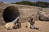 Two women rest on the dried Kalotumum riverbed, before starting to fetche water in Kerio, located in Turkana County, northwest Kenya on October 15, 2024. Due to the severe drought that is affecting the country, many people are forced to drink water that they fetch from the underground, which is not clean and often causes infections or diseases.Alessio Paduano