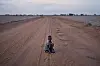 A child pushes a wheelbarrow inside a dried river in Lochwangamatak village, located in Turkana County, northwest Kenya on October 18, 2024. Kenya's rivers are drying up rapidly, with low rainfall and global warming being among the main causes of this phenomenon.Alessio Paduano