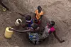 Children sit near a well dug to fetche water from the dried Kalotumum River in Kerio, located in Turkana County, northwest Kenya on October 17, 2024. Due to the severe drought that is affecting the country, many people are forced to drink water that they fetch from the underground, which is not clean and often causes infections or diseases.Alessio Paduano
