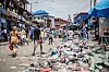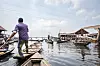 Forbi flyter båter med leker, utstillingsdukker og klær, matvarer, kurver og fiskenett. Fra en barbersalong spilles det hiphop, fra en annen nigeriansk pop. Under flere av husene sitter kvinner i båtene sine, i ly av den sterke formiddagssolen. De venter på at mennene deres skal komme tilbake fra fisket så de kan foredle fisken før den skal videre ut på markedet.
