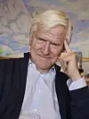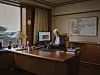 Det store kontoret hans er innredet i mørkt tre. I vinduskarmen ligger en gipsavstøpning av dødsmasken til Anne-dukken. På veggene henger kunst, og på hylla står innrammede diplomer – og fem små lekebiler i gummi.