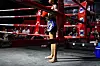 I en fullsatt boksestadion tilbake i Krabi står en mann helt foran, litt framoverlent på en liten tribune full av menn som alle ser ut som taxisjåfører. Mellom bena har han en vannflaske som beveger seg når han engasjert hever hælene for å få enda bedre oversikt over bokseringen.