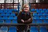 Hun sitter på tribunen og ser i grunnen ut som en fotballmamma. Med olabukser, hvite joggesko og en jakke som i hvert fall kan stenge ute noe av ettermiddagens vårlige vindkast.