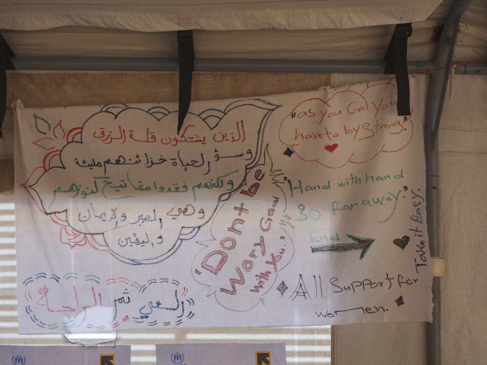 Ti kvinner i ulike aldre har tatt plass på lyseblå plaststoler. De sitter tett i en halvsirkel i et hus med vegger og tak av sølvfarget bølgeblikk. Ute steker sola, det er nesten 40 varmegrader. Rommet har ikke aircondition, kun et par halvåpne luker som slipper inn litt luft og dagslys. Kvinnene er invitert av en hjelpeorganisasjon for å dele erfaringer og tanker om hvordan kvinner rammes av krig.