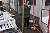 På utsiden er det meste på plass og en ukrainsk soldat er i gang med å male den nye betongfasaden. Ukrainske myndigheter betaler fasadeutbedringen – med støtte fra internasjonale bistandsorganisasjoner.