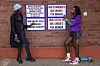 Tefo Bortumelo, som leder organisasjonen One in Nine Campaign, står sammen med flere kvinner foran et banner som viser hvordan 1 prosent av verdens befolkning sitter på nesten all rikdom, mens de resterende 99 prosentene får lite eller ingenting.