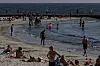 Kafeene ligger tett i tett og tilbyr alle slags retter. Skoleferien er nettopp over og det er de eldre som dominerer blant badegjestene. På stranden høres glade rop, der en gruppe voksne, både kvinner og menn, er godt i gang med en humørfylt volleyball-kamp.