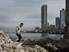 På vei til strandpromenaden, passerer vi det som en gang var et hotell, men som nå bare er et skall av en bygning – en grim påminnelse om grusomhetene denne byen har stått i.