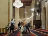 Fredagsbønnen er over i Mohammad al-Amin-moskeen, og det er nesten tomt i bønnesalen når vi kikker opp mot den mektige, mer enn 50 meter høye mosaikk-kuppelen.