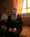 Amina sitter stille i lenestolen under et portrett av den savnede sønnen.