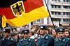 Noen land kommer, og noen land går. Ett av dem er Øst-Tyskland. Bildet viser folkepoliti og DDR-borgere som viftet med det tyske flagget i Dresden i 1990.Foto: IMAGO / NTB
