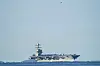 Det amerikanske hangarskipet USS Gerald R. Ford på vei inn Oslofjorden, her ved innseilingen til Oslofjorden ved Jeløya onsdag morgen.Foto: Terje Pedersen / NTB